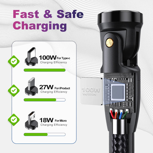 AUFU 5A Magnetic USB C Cable For Realme Huawei 100W Fast Charging Wire For IPhone Samsung Laptop Micro Magnet Charger USB Cable